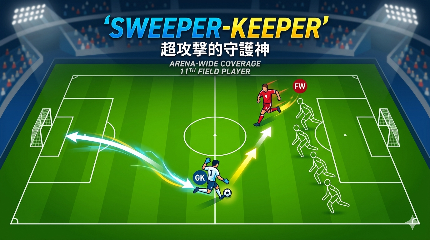 - サッカー用語としての意訳: 自陣のゴールマウスを守るだけでなく、ペナルティエリアの外まで積極的に飛び出し、DFラインの裏のスペースをカバー(掃除)したり、攻撃の起点としてパス回しに参加したりするゴールキーパーのこと。